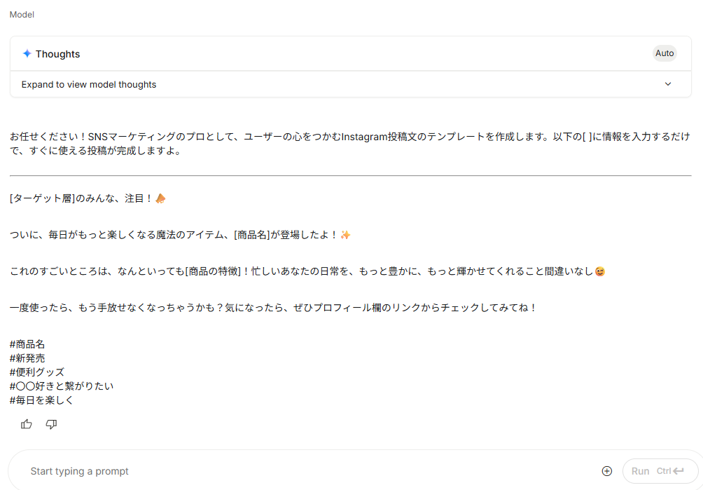 【完成したプロンプトの実行例】