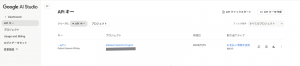 まず、Google AI StudioのPlayground画面を開き、左側のメニューに注目してください。上から2番目に「Get API key」という項目があります。ここをクリックすると、あなたのAPIキーを一覧で管理するための専用画面が表示されます。
