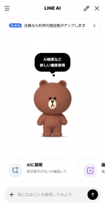 「LINE AI」は、LINE内でAIと対話できる新機能です。チャット形式で質問や相談をすると、AIがリアルタイムで回答してくれます。日常会話から仕事のサポートまで幅広く活用可能です。