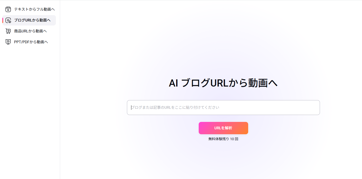Step 1: 「AIブログからビデオ」にURLをコピペ
